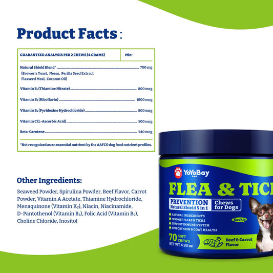 犬用ノミ・ダニ予防チュアブル - ソフトチュアブル70個入り、ビーフ&キャロット風味