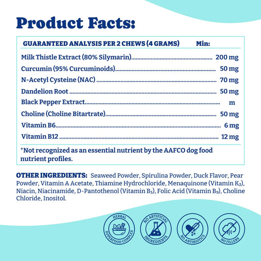 ミルクシスル 肝臓サポート 犬用チュー - ダック&洋ナシ風味 - 120粒