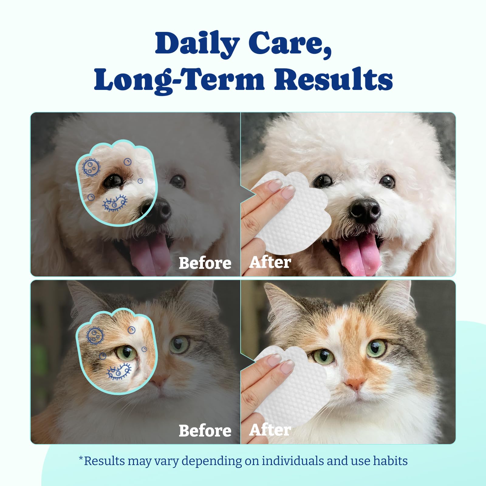 - 犬猫用涙やけ除去剤:ペットに優しいアイワイプで、涙やけ、目やに、目ヤニ、目やにを効果的に除去します。毎日のお手入れに適しており、汚れの蓄積を軽減し、ペットの目を清潔に保ち、時間の経過とともに涙やけを徐々に薄くします。