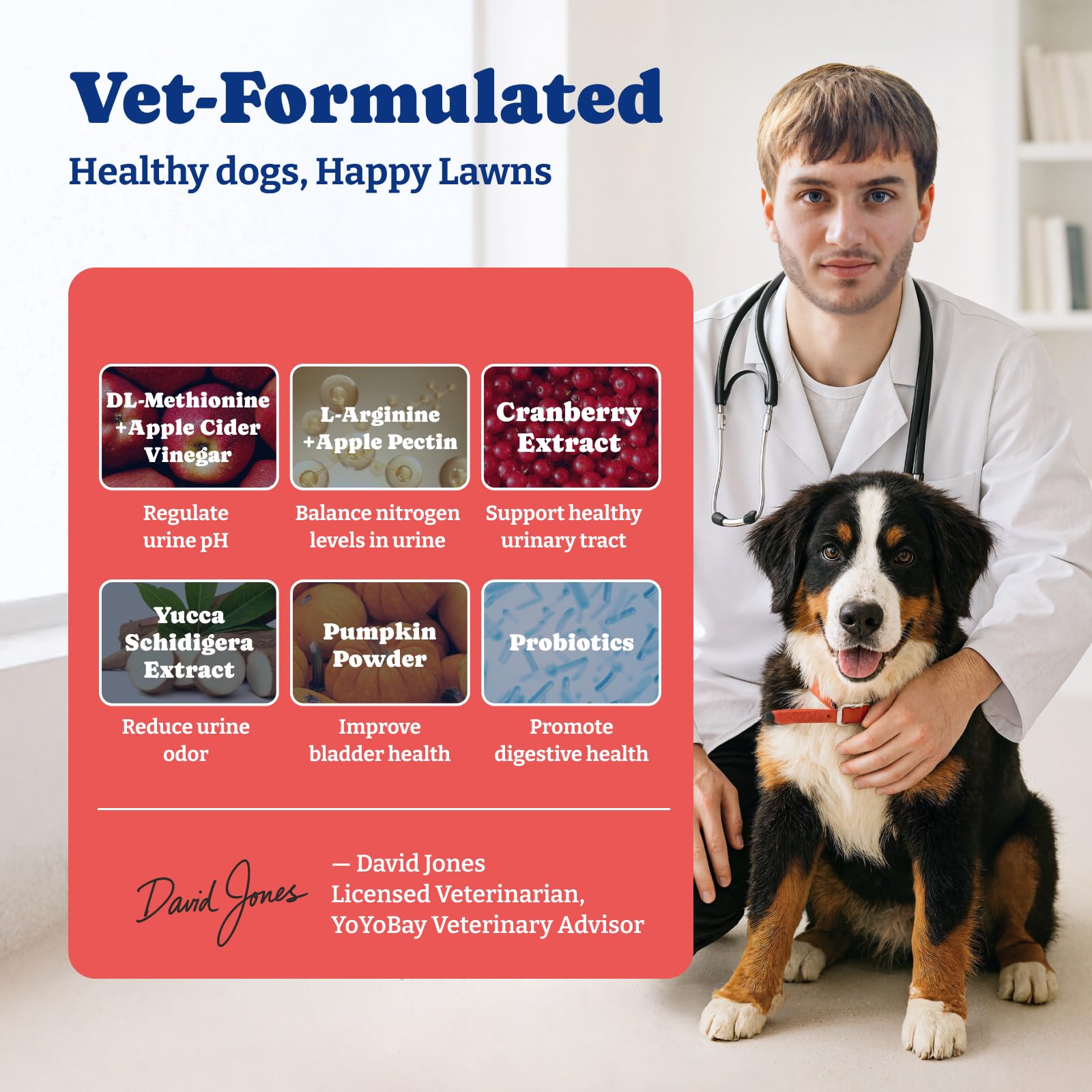 - 尿路と消化器系の健康をサポート:プロバイオティクスと消化酵素を配合したこの芝生用チューは、芝生に優しい尿路をサポートするだけでなく、消化を助け、愛犬の腸内環境全体の健康を改善します。芝生用犬用尿中和剤は、腸内環境の健康をサポートし、消化を促進します。また、犬の尿を芝生に中和することで、ペットの安全を守り、犬の免疫機能を促進します。