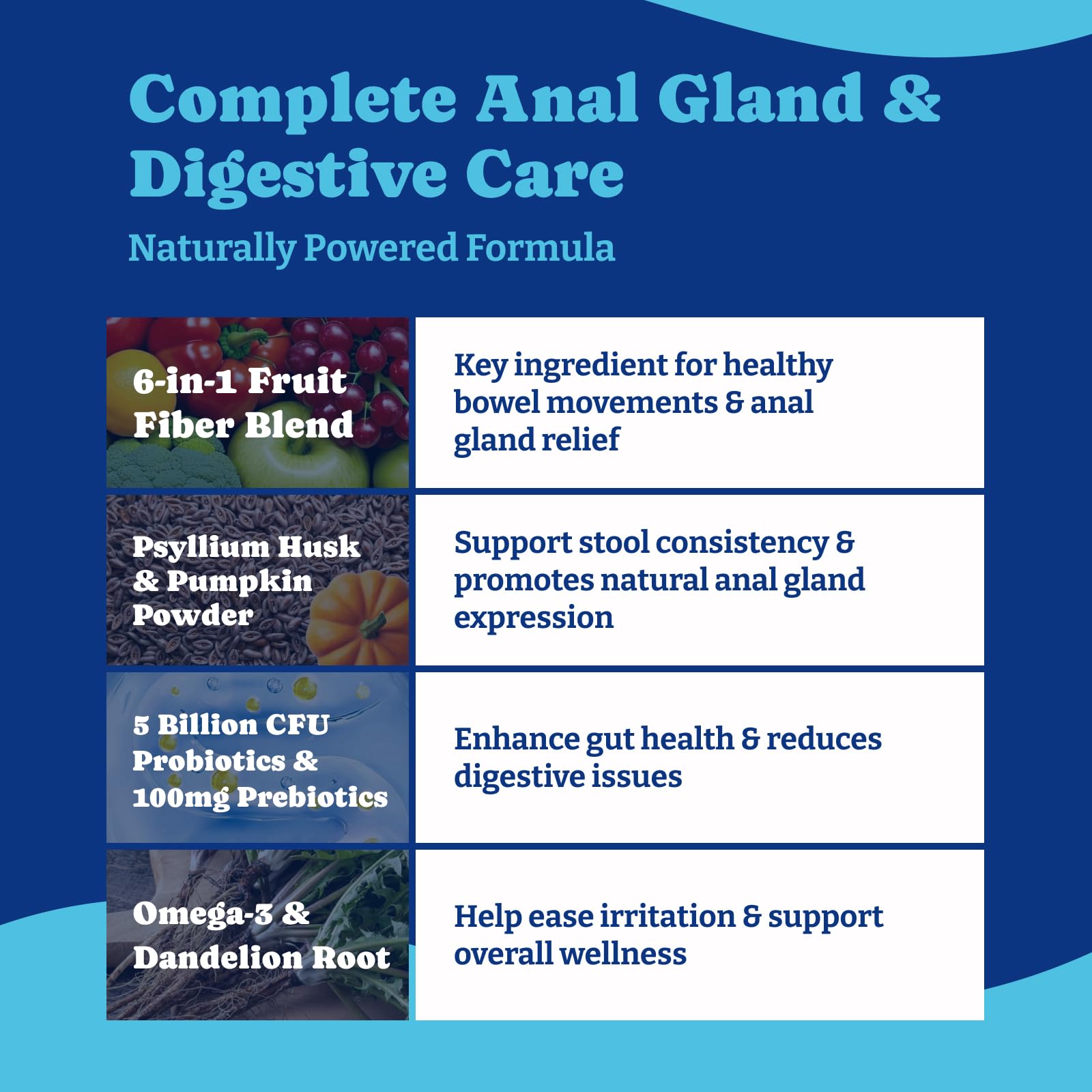 - 肛門腺サポート:当社の先進的なフォーミュラは、肛門腺の健康を促進し、便の硬さをサポートします。また、オメガ3とタンポポの根を配合し、子犬の尻尾の運動を緩和し、快適に保ちます。尻尾を振るのではなく、尻尾を振って運動できます。