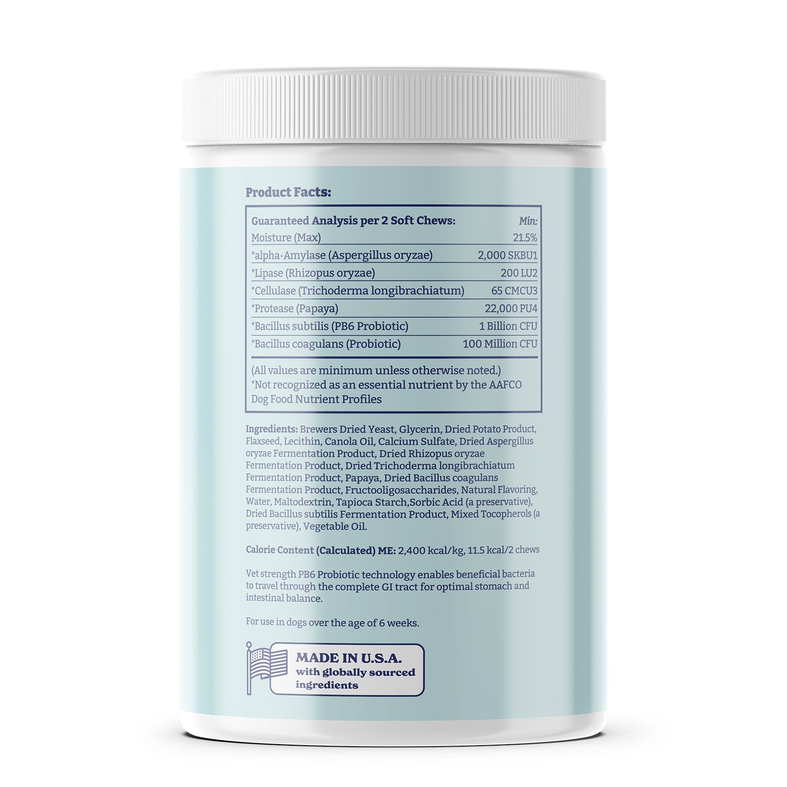 - プロバイオティクスの宝庫 - それぞれ10億CFUを超えるバチルス・サブチリスとバチルス・コアグランスが、愛犬の免疫力と腸内環境を強化します。消化を促進し、免疫力を高め、栄養吸収を改善します。バチルス・サブチリスは腸内バリアを強化し、バチルス・コアグランスは腸内フローラのバランスを整えることで、愛犬の健康と活力を最適に保ちます。
